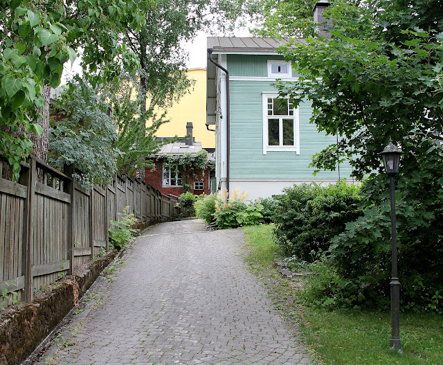 Turun vanhakaupunki tunnetaan ensi sijassa arvorakennuksistaan, joista tuomiokirkko ylhäisimpänä, mutta eniten minua kiehtoo alueen asutus kujineen ja kukkapihoineen. Kaupunkisuunnittelijoita alueen nykyisyys ei tyydytä. Heidän mukaansa vanhakaupunki on toiminnallisesti unelias ja kaupallisesti kehittymätön ja puistot vajaakäytöllä. Kehittämissuunnitelmassa alue halutaan nähdä vetovoimaisena matkailukohteena, mitä se sitten käytännössä olisikaan. Minulle alueen nykyinen "toiminnallinen uneliaisuus" on sen vahvuus. Meteliä ja menoa löytyy muualta.